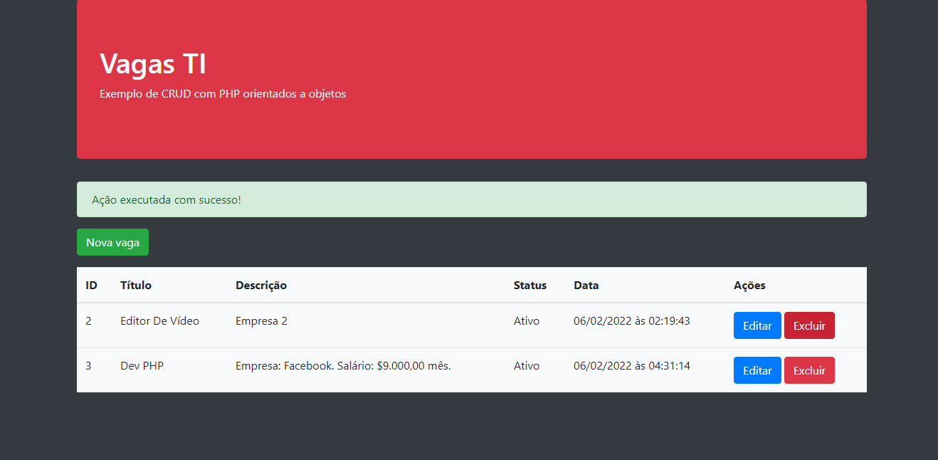 Um CRUD completo Utilizando PHP | JavaScript | Data Base MYSQL | HTML-CSS | Composer para dependencias